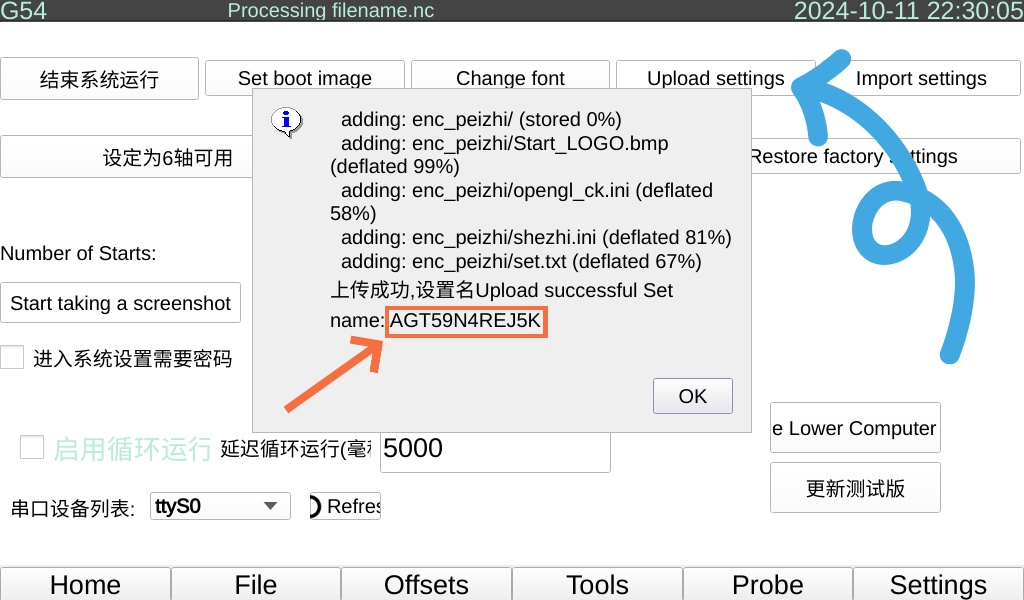 After uploading the settings, click on <Import System Settings>. The system will download the settings file associated with your WiFi name from the server and apply the settings. Therefore, before doing this, you should change your WiFi name to inform the system of your settings file name, such as: AGT59N4REJ5K